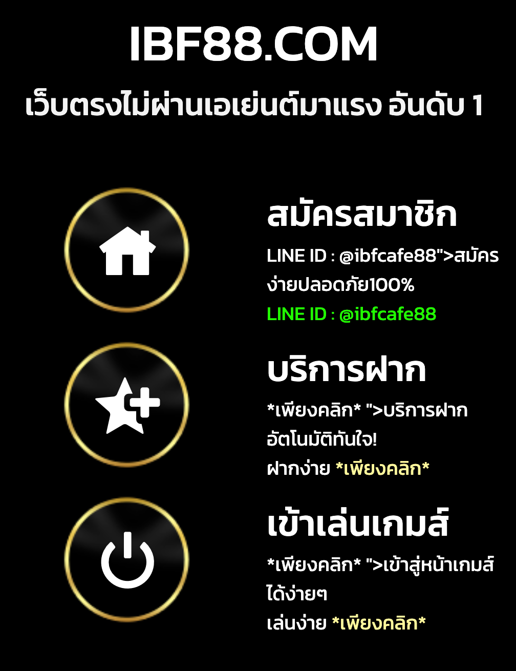โปรโมชั่นฝาก 1 รับ 150 ของ ibf88 โปรโมชั่นฝาก 1 รับ 150 ของ ibf88 เป็นข้อเสนอที่น่าสนใจซึ่งออกแบบมาเพื่อดึงดูดนักพนันทั้งใหม่และเก่าให้เข้าร่วมสนุกกับแพลตฟอร์มการเล่นพนันออนไลน์นี้ โดยผู้เล่นสามารถเริ่มต้นด้วยการฝากเงินเพียง 1 บาท แต่จะได้รับยอดโบนัสทันทีถึง 150 บาท ซึ่งเป็นข้อเสนอที่คุ้มค่าในการลงทุน และทำให้ผู้เล่นสามารถทดลองเล่นเกมต่าง ๆ ได้มากขึ้น หลักการทำงานของโปรโมชั่นนี้ค่อนข้างตรงไปตรงมา โดยผู้เล่นเพียงแค่ทำการฝากเงินจำนวน